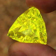 Cerium doped GAGG (Gadolinium Aluminum Gallium Garnet) is a hyperfluorescent garnet with a color between green LuAG and yellow Cerium YAG. Some special varieties of GAGG (High Glow GAGG) have a special manufacturing defect, they will photoluminesce for extended periods of time (GLOW IN THE DARK) after being exposed to radiation from the sun or blacklight. GAGG will fluoresce a bright yellow color under black light. It has a mohs hardenss of 8.
