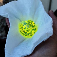 Lumogarnets are a class of hyperfluorescent repurposed lab garnets introduced into the jewelery trade by Stephen and Timothy Challener of Angry Turtle Jewelry in 2022. The three we offer at House of Sylas are cerium doped LuAG, high glow cerium doped GAGG, and cerium doped YAG. All three lab garnets are types of scintillators. Scintillators glow in the presence of invisible radiation, and the brighter they glow, the more radiation present. Lumogarnets are durable (mohs 8-8.5), safe, and the brightest gems you will find anywhere.